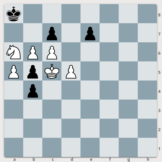 Les plus perspicaces d'entre-vous auront peut-être vu la disposition particulière des pions a5 et b5 et entrevu une solution :